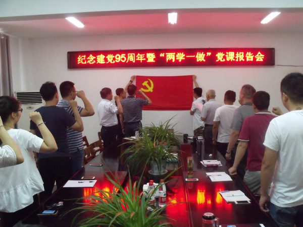 6月29日,蚌埠市公司黨委舉行了紀(jì)念建黨95周年暨“兩學(xué)一做”黨課報告會。會上,紀(jì)委書記王新進(jìn)首先帶領(lǐng)全體黨員進(jìn)行集體宣誓,重溫入黨誓詞。宣誓完畢,黨委書記邱軍給全體黨員作了題為《舉起右拳,面對鮮紅黨旗》的專題黨課,通過學(xué)習(xí)重溫建黨以來入黨誓詞的變化,使廣大黨員更加深刻理解了入黨誓詞是《中國共產(chǎn)黨章程》的重要內(nèi)容,是黨員入黨時對黨和人民作出的莊嚴(yán)政治承諾,是黨員為黨奮斗終生、獻(xiàn)身黨的事業(yè)的誓言和座右銘的重要?dú)v史和現(xiàn)實(shí)意義。邱軍要求每一位黨員要宣讀誓詞、牢記誓詞、維護(hù)誓詞、踐行誓詞,增強(qiáng)黨員意識,恪守承諾,守規(guī)履責(zé),在思想、政治、行動上做一名真正合格的黨員,立足崗位,充分發(fā)揮先鋒模范作用。