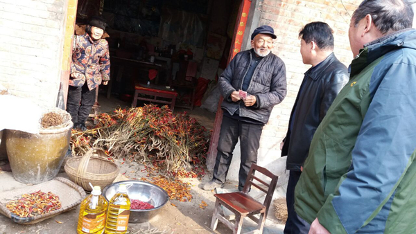 譙東鎮(zhèn)余集村是我市重點(diǎn)貧困村,我公司負(fù)責(zé)13戶特困村民,春季前夕,專程為特困村民送去慰問金和食用油,送去黨和政府的溫暖,送去鹽業(yè)人的關(guān)愛。每到一戶,榮立華都問寒問暖,并叮囑他們保重身體,87歲的特困戶李秀蘭拉著榮立華的手熱淚盈眶,連聲感謝黨和政府的關(guān)懷,榮立華叮囑老人我們會(huì)把扶貧工作做好做到位,希望老人家安度晚年、健康長壽。