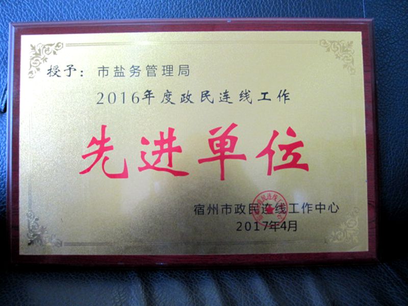 近日,宿州市政民連線工作中心通報表彰了2016年度全市政民連線工作先進(jìn)單位和個人,宿州市鹽務(wù)局被授予“2016年度政民連線工作先進(jìn)單位”稱號。