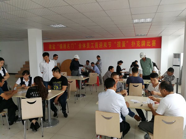 為迎接即將到來(lái)的中秋和國(guó)慶佳節(jié),同時(shí)加強(qiáng)公司各部門(mén)之間的聯(lián)系,方便日常工作的順利開(kāi)展,活躍公司內(nèi)部員工工作氣氛,激發(fā)公司員工的工作熱情。9月21日,“徽鹽•錦繡名門(mén)”項(xiàng)目公司食堂熱鬧非凡,公司各部門(mén)員工共同參加喜迎雙節(jié)“摜蛋”撲克牌比賽。