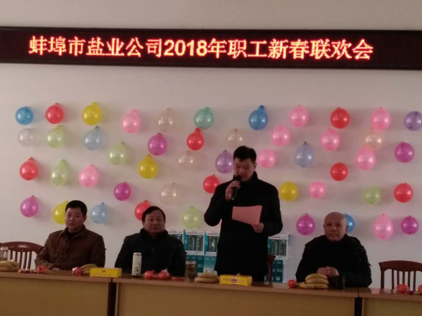 公司黨委書記邱軍做開場致辭。他說,過去的2017年蚌埠鹽業(yè)砥礪前行,艱苦奮斗,新的一年更需要大家團結一心,用拼搏和汗水迎接新的挑戰(zhàn)和機遇,同創(chuàng)共贏。他代表公司黨委向廣大員工致以崇高的敬意和新春最美好的祝愿。