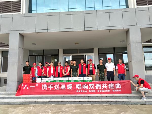 “八一”建軍節(jié)到來之際,7月27日,來安縣局志愿者在新城社區(qū)的組織領導下,頂著炎炎烈日到武警支隊看望慰問武警官兵,為他們送去節(jié)日的祝福及防暑飲品,感謝他們長期以來對維護社會穩(wěn)定、守衛(wèi)人民的幸福安寧,為我縣社會經(jīng)濟等各項事業(yè)發(fā)展所做的卓越貢獻,受到官兵的熱烈歡迎及深深的感謝。