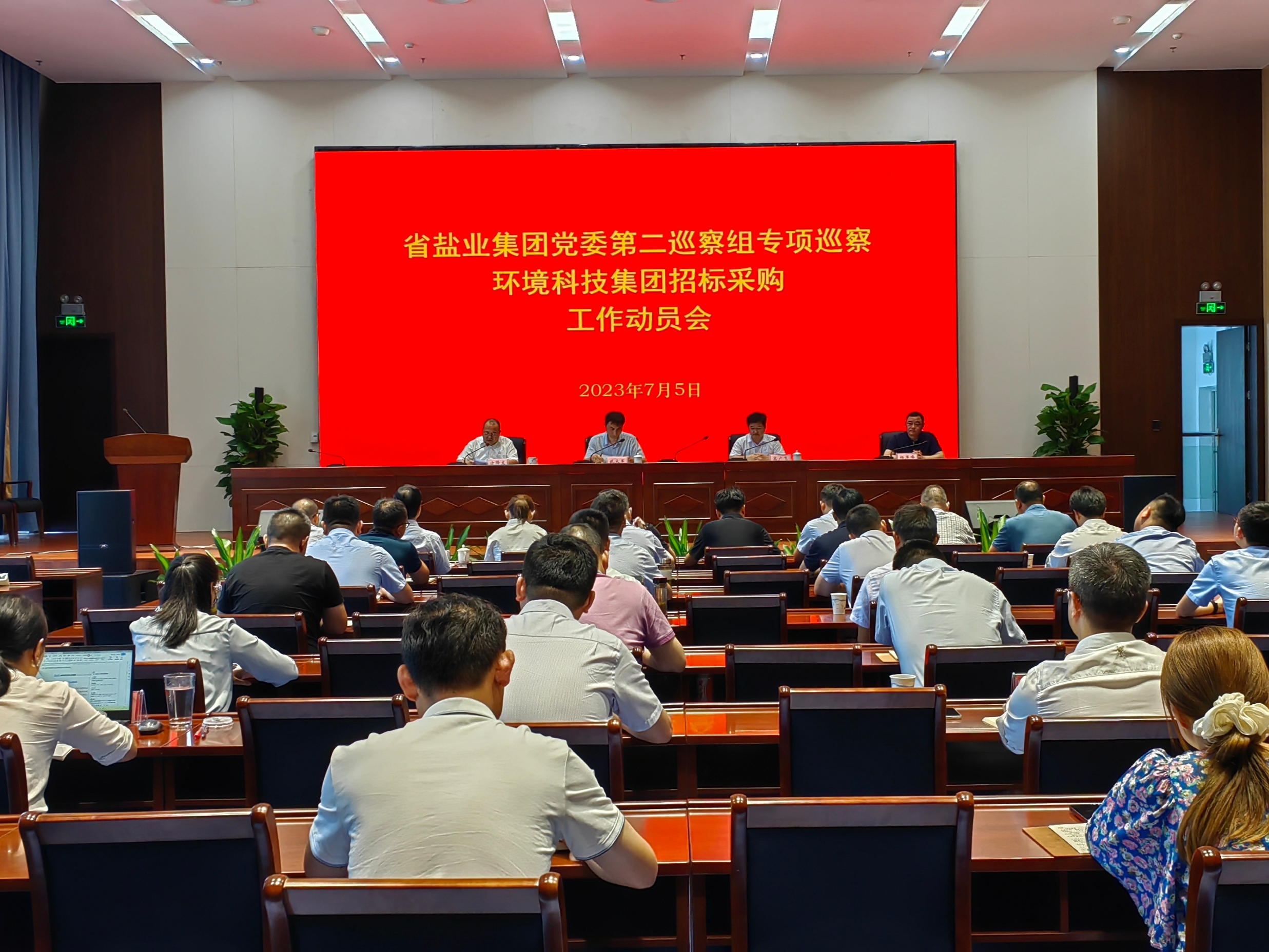 根據(jù)省鹽業(yè)集團(tuán)黨委統(tǒng)一部署,7月5日,省鹽業(yè)集團(tuán)黨委第二專項(xiàng)巡察組巡察環(huán)境科技集團(tuán)招標(biāo)采購工作動員會召開。會上,集團(tuán)紀(jì)委副書記、黨委巡察辦主任武大軍傳達(dá)上級巡視巡察工作指示精神和集團(tuán)黨委巡察工作部署要求;第二專項(xiàng)巡察組組長高廣飛通報巡察任務(wù)和總體安排,對配合巡察工作提出要求;環(huán)境科技集團(tuán)黨委書記、董事長方降龍主持會議并做表態(tài)發(fā)言。第二專項(xiàng)巡察組成員,環(huán)境科技集團(tuán)領(lǐng)導(dǎo)班子成員,各職能部門、所屬各單位負(fù)責(zé)人和部分職工代表參加會議。