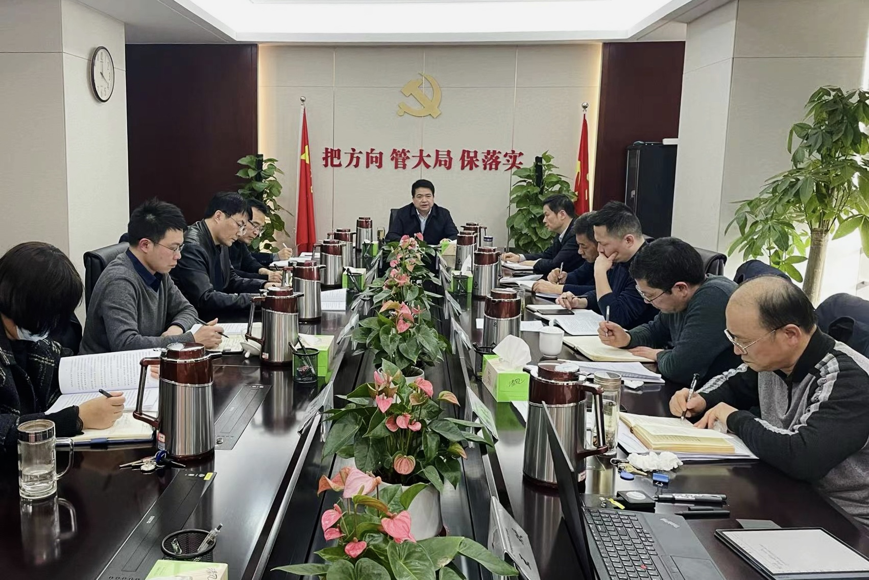 1月25日下午,集團(tuán)黨委召開2024年理論學(xué)習(xí)中心組第一次學(xué)習(xí)會(huì)議,開展“學(xué)習(xí)貫徹中央經(jīng)濟(jì)工作會(huì)議精神,推動(dòng)集團(tuán)高質(zhì)量發(fā)展”大學(xué)習(xí)大討論,黨委書記、董事長羅太忠主持會(huì)議并講話,集團(tuán)黨委和經(jīng)營班子成員、地產(chǎn)集團(tuán)主要負(fù)責(zé)人、本部相關(guān)部門主要負(fù)責(zé)人參加會(huì)議。