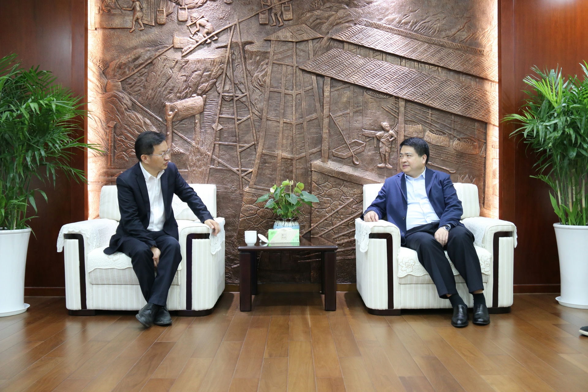 演講開始前,集團黨委書記、董事長羅太忠,集團董事劉超、程保銀,集團黨委委員、副總經理余保山、王奇等會見了周波平一行,就深耕生態(tài)環(huán)境產業(yè)加強溝通合作進行了交流。