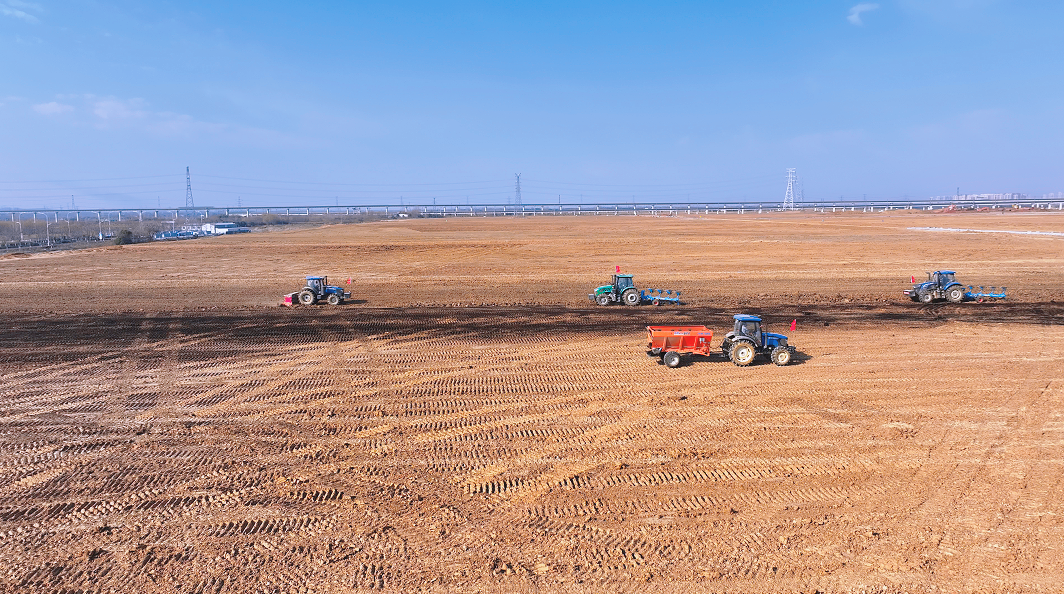 圖為引江濟淮工程高新區(qū)2號棄渣場臨時用地土地復墾項目土壤改良作業(yè)現(xiàn)場