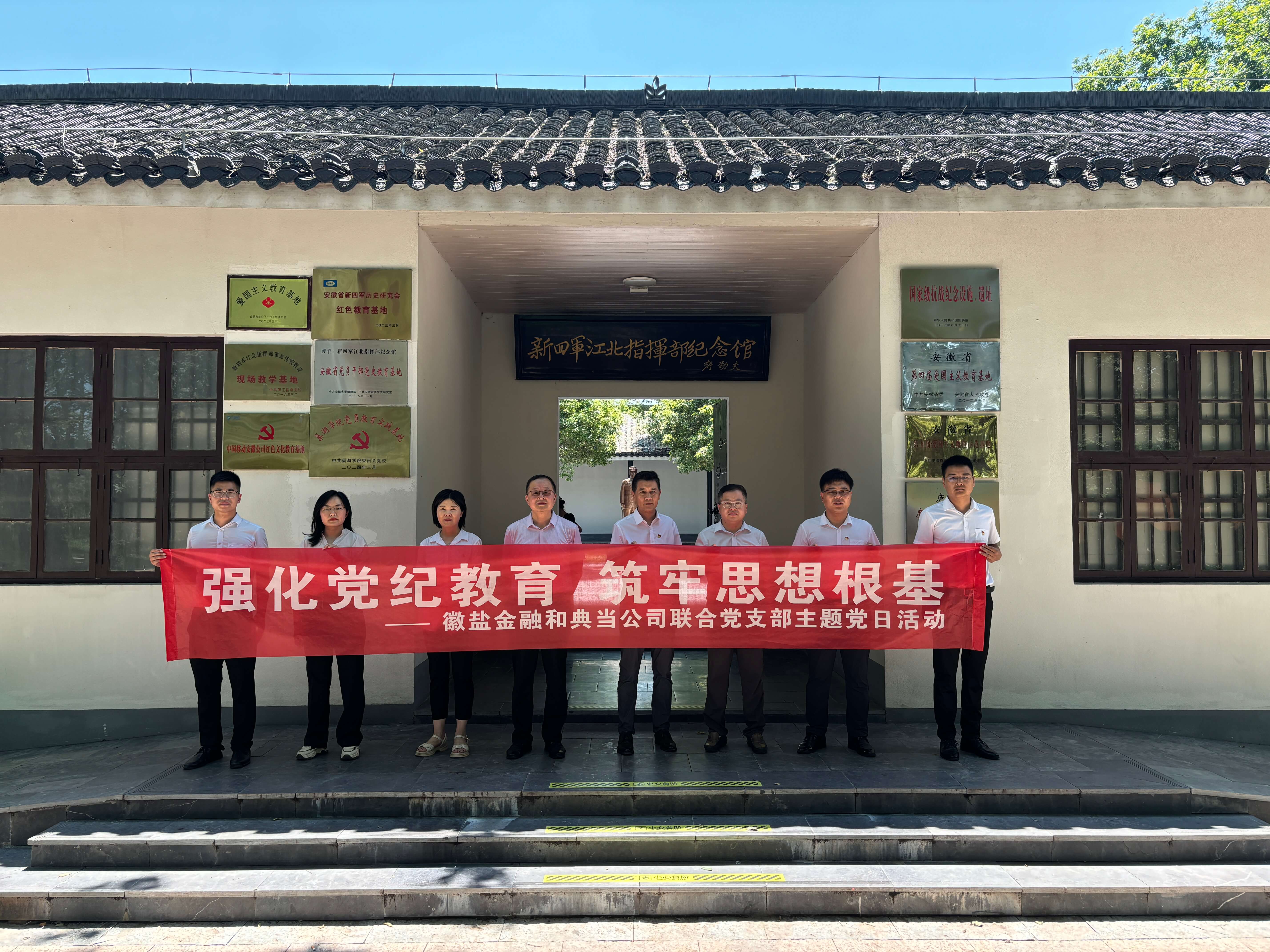 為推進黨紀學習教育走深走實,引導黨員做到學紀、知紀、明紀、守紀,切實筑牢知敬畏、存戒懼、守底線的思想防線,7月開5日,金融典當公司聯(lián)合黨支部組織全體黨員赴新四軍江北指揮部紀念館,開展“強化黨紀教育 筑牢思想根基”主題黨日活動。