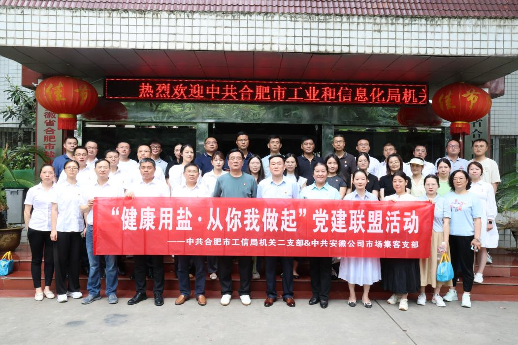 8月30日上午,合肥市工業(yè)和信息化局機關(guān)二支部、安徽省通信產(chǎn)業(yè)服務(wù)有限公司市場集客支部赴合肥市鹽業(yè)公司,開展“健康用鹽 從你我做起”共建主題黨日活動。市工信局駐局紀(jì)檢監(jiān)察組組長、黨組成員李玲,市工信局產(chǎn)業(yè)政策處處長周玉玲,安徽省通信產(chǎn)業(yè)服務(wù)有限公司市場集客支部書記陳猛,合肥市公司黨委書記、董事長張鷹,黨委委員、副經(jīng)理張革,以及共建單位黨員同志參加活動。